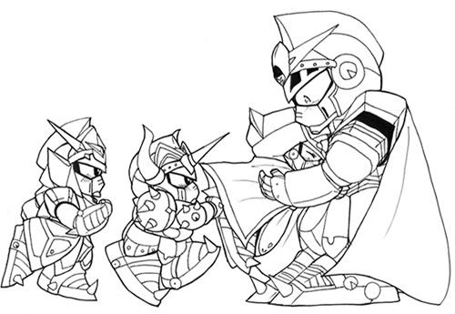 三つ子の衣装修正より親父の兜修正のが楽。。。