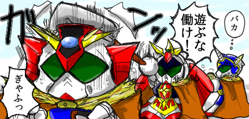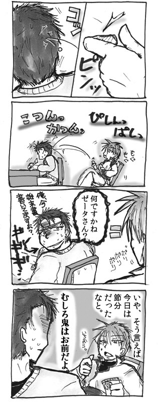『ZZが非番のゼータを呑みに誘っていたのだが、当日になって団長に(笑顔で)始末書の書き直しを命じられ、ZZの待ち時間に暇なので後ろから後頭部を集中的に攻撃するゼータ』